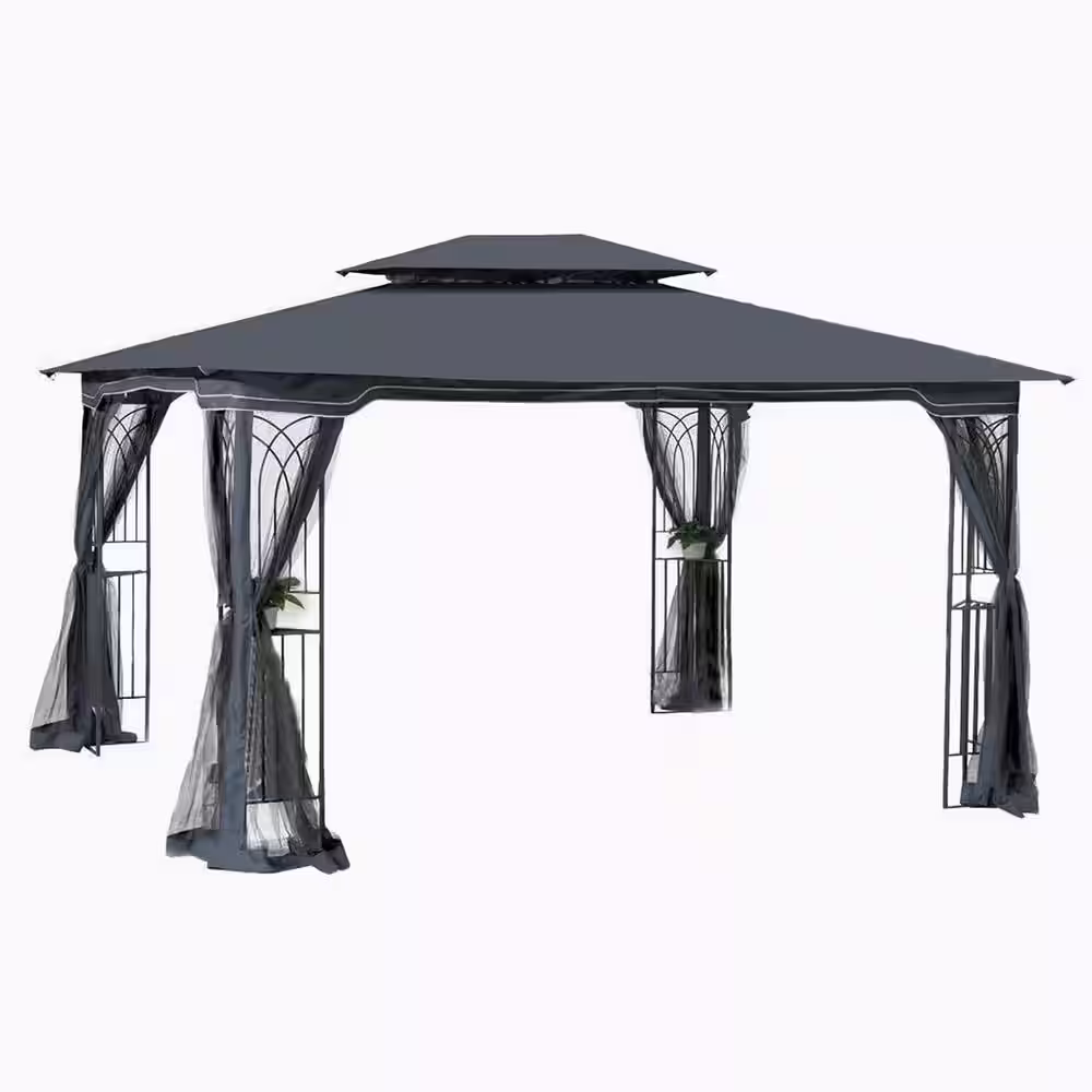 None 13 ft. x 10 ft. Gray Top Patio Gazebo Canopy Tent With Ventilated Double Roof and Mosquito Net