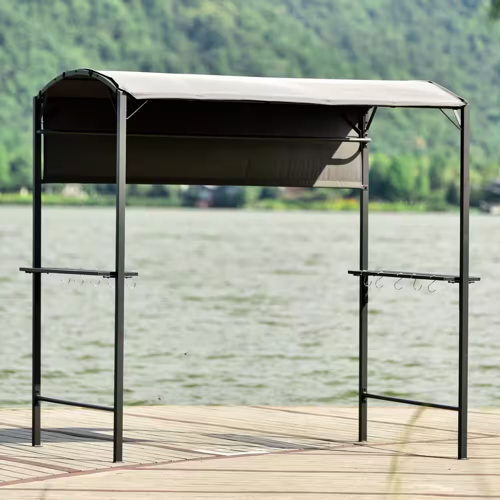None 7 ft. W x 6.8 ft. H Steel Double Tiered Patio Gray BBQ Grill Gazebo with Side Awning