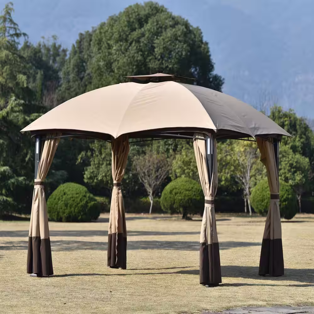 Harper & Bright Designs 10 ft. x 12 ft. Brown Double Vents Gazebo Patio with Screen and LED Lights