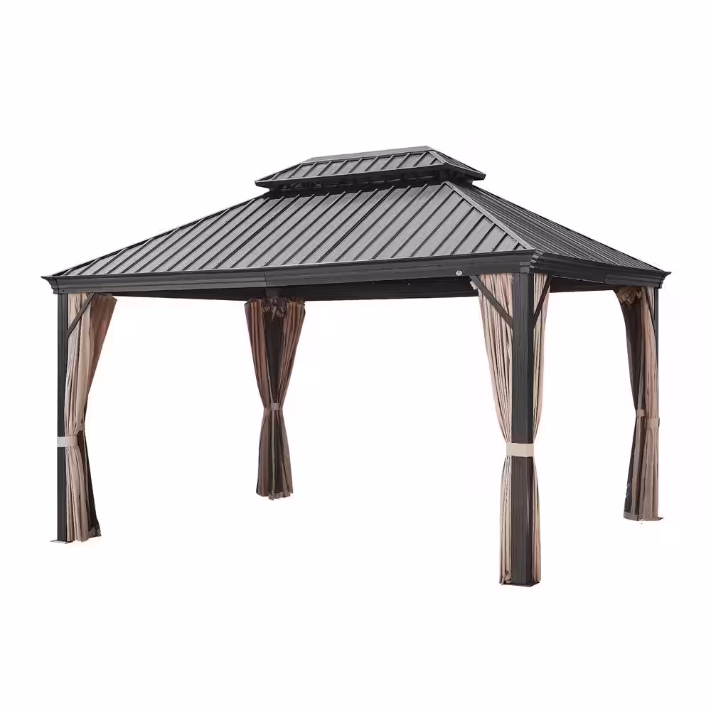 None 10 ft. x 12 ft. Aluminum Hardtop Gazebo with Galvanized Steel Roof and Mosquito Net