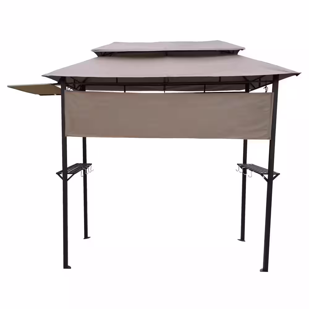 None 8 ft. x 4 ft. Metal Grill Gazebo with Soft Top Canopy and Steel Frame with Hook and Bar Counters, Fabric Mushroom