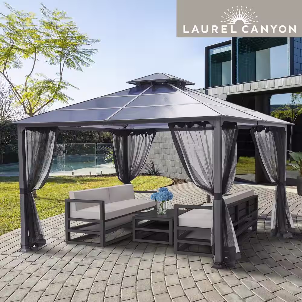 LAUREL CANYON 12 ft. x 12 ft. Polycarbonate Gazebo with Mosquito Netting (2-Tier)