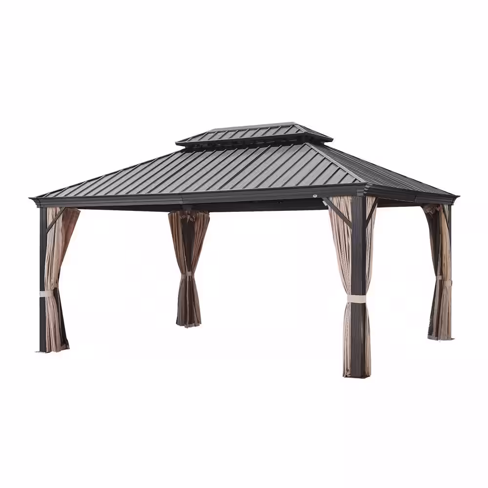 None 12 ft. x 16 ft. Aluminum Hardtop Gazebo with Galvanized Steel Roof and Mosquito Net