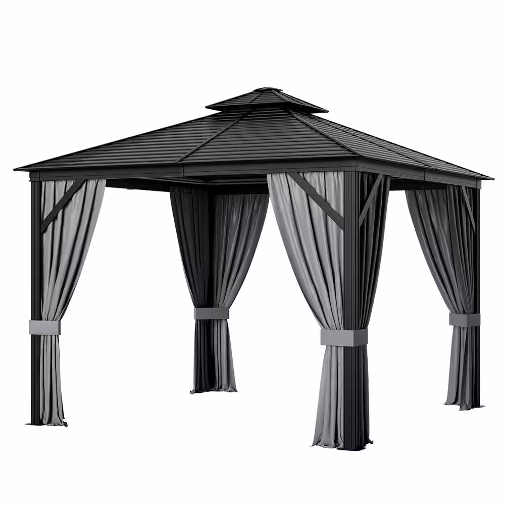 Costway 10 ft. x 10 ft. Patio Double-Top Hardtop Gazebo Galvanized Steel Roof Aluminum Frame