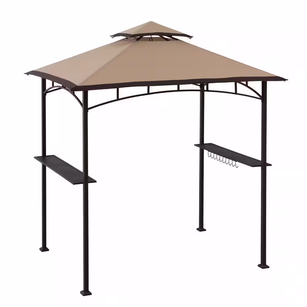 Sunjoy 8 ft. x 5 ft. Brown Steel 2-Tier Grill Gazebo with Tan and Brown Canopy