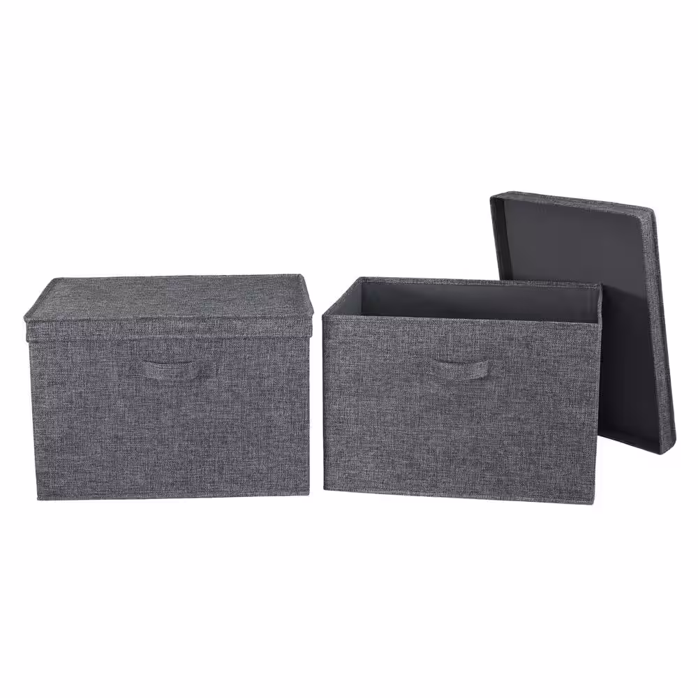 HOUSEHOLD ESSENTIALS 13 Gal. Jumbo Linen Storage Box in Latte (2-Pack)