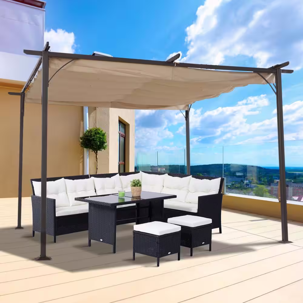 Outsunny 7.5 ft. H Retractable Canopy Cover Steel Frame Classic Pergola Gazebo