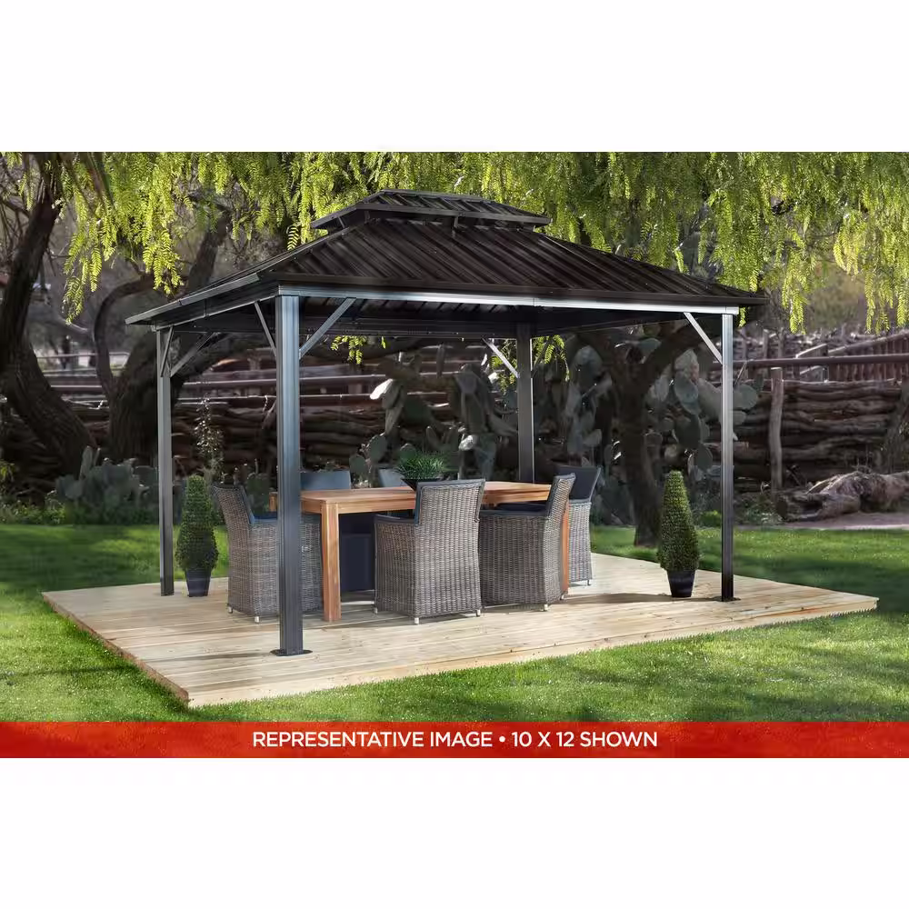 Sunjoy Myla 11 ft. x 13 ft. Cedar Framed Gazebo with Brown Steel 2-Tier Hip Roof Hardtop