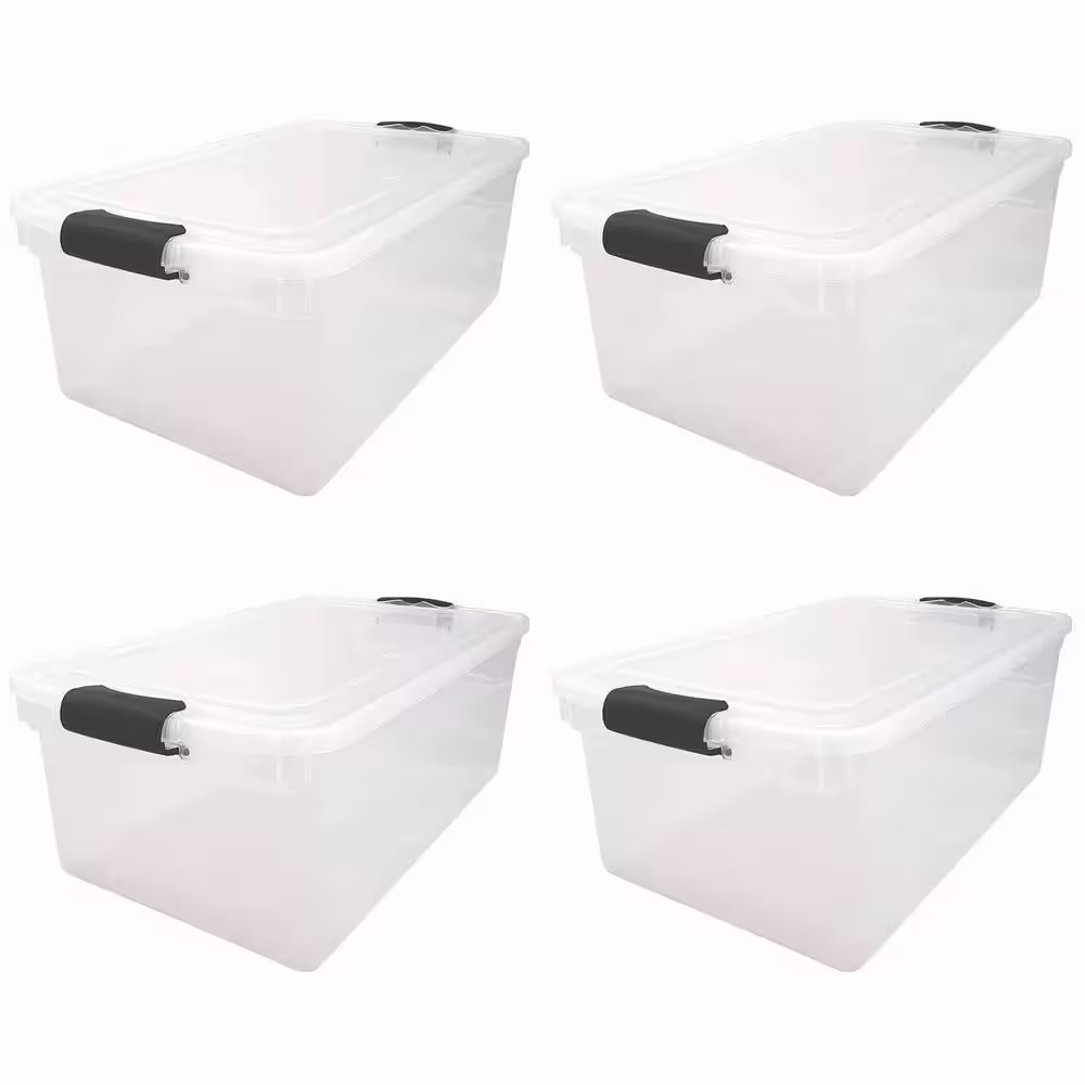 HOMZ 66-Qt. Clear Storage Organizing Container Bin with Latching Lids (4 Pack)