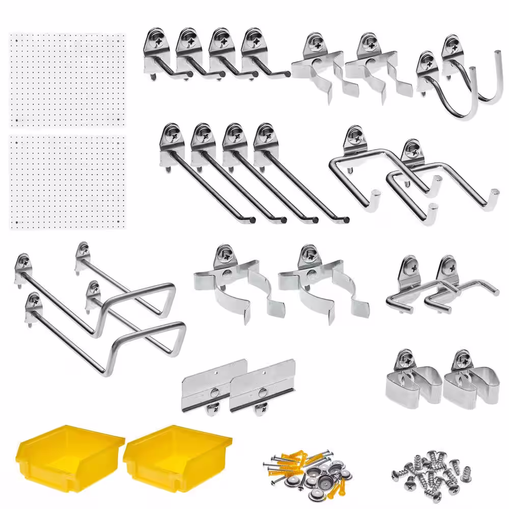 DuraHook 84-Piece VersaCenter Wall Organizer (24 Hooks, 2 DuraBoards, 54-Piece Mounting Kit, 4-Piece Bin System)