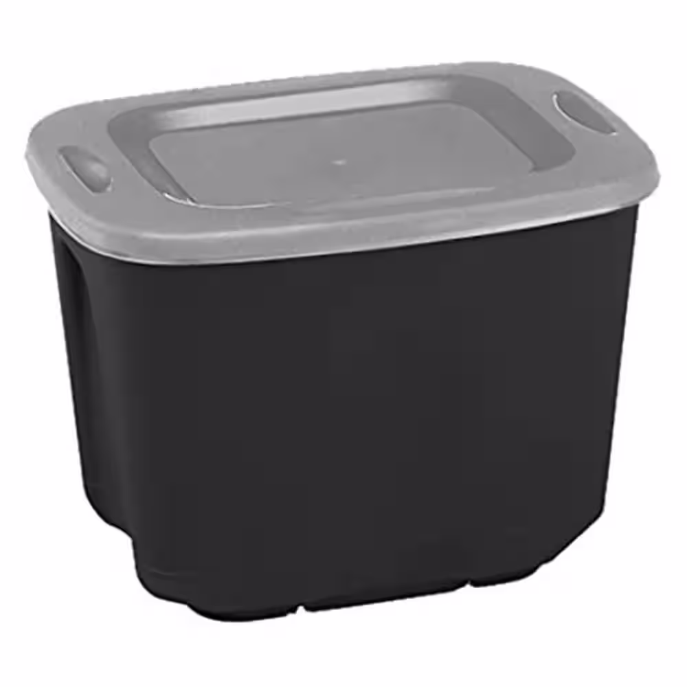 HOMZ 10 gal. Durable Molded Plastic Storage Bin with Secure Lid in Black and Silver