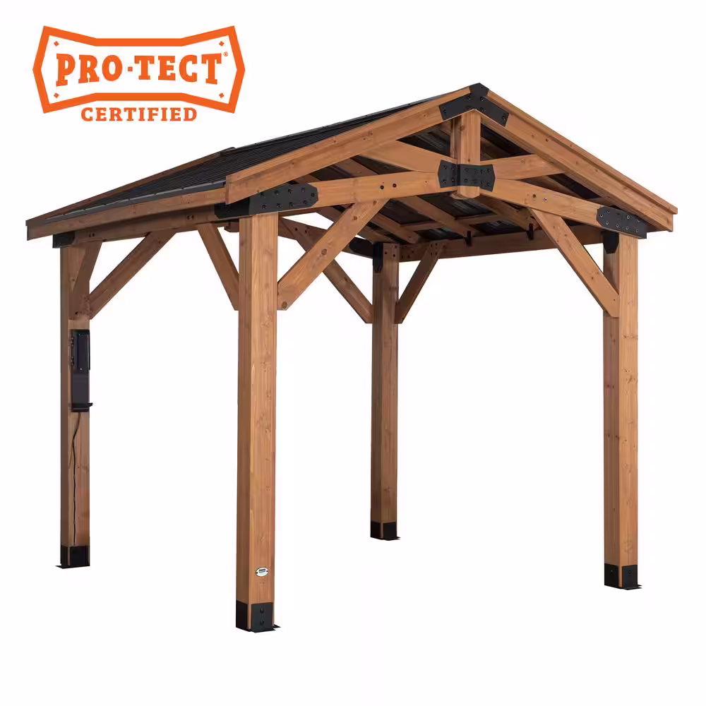 Sunjoy Jalen 9 ft. x 9 ft. Cedar Framed Gazebo with Brown Steel and Polycarbonate Hip Roof Hardtop