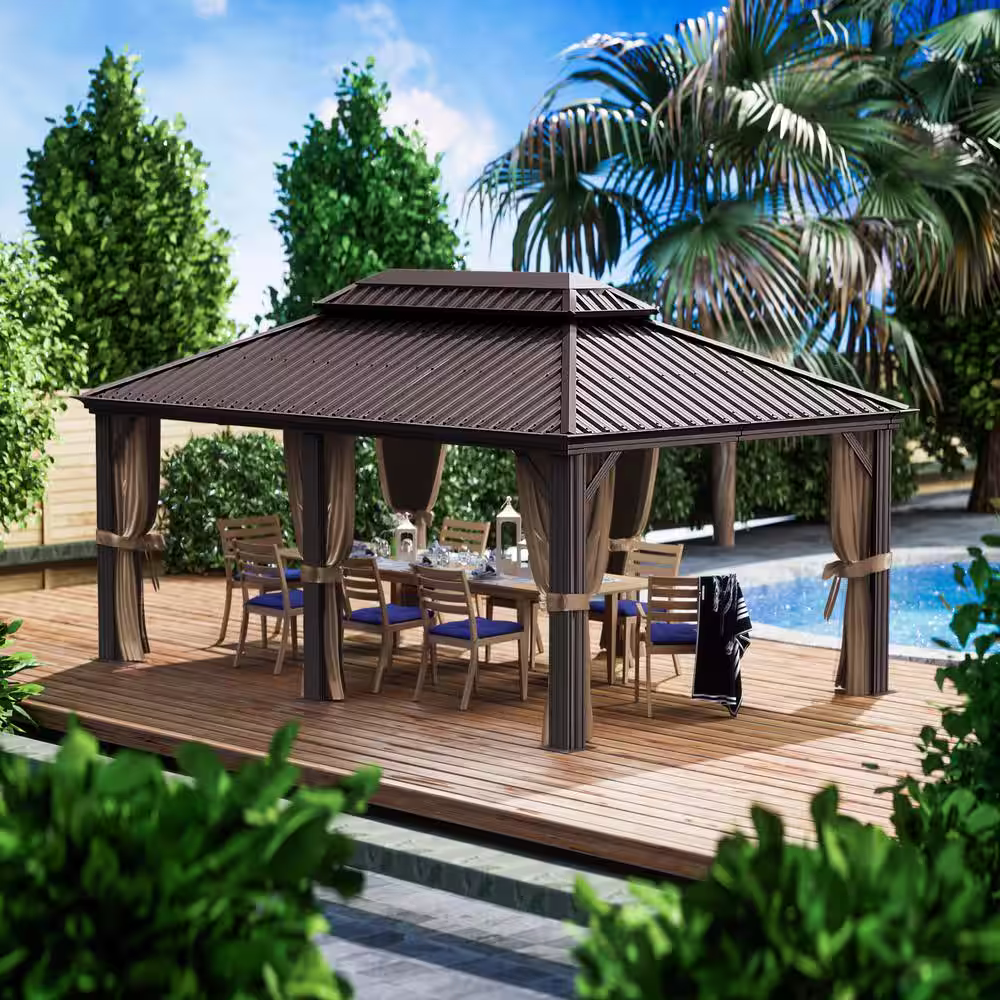 Backyard Discovery Barrington 12 ft. x 10 ft. Brown Gazebo Hard Top Steel Hip Roof Gazebo
