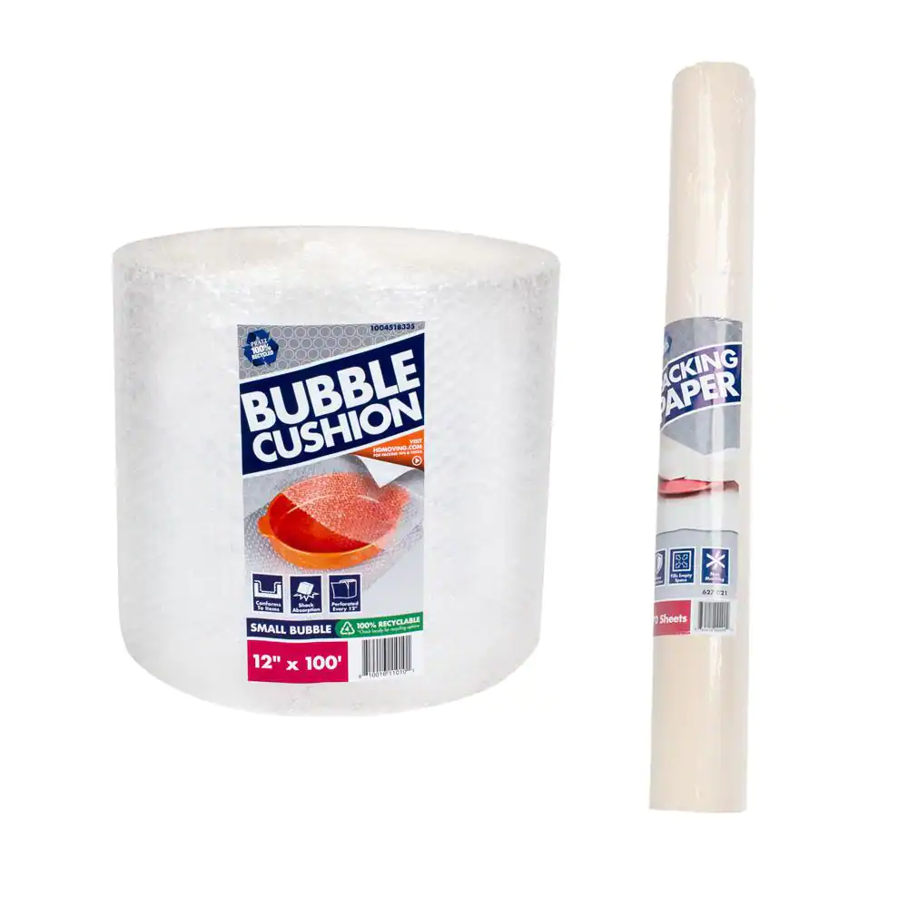 Pratt Retail Specialties 3/16 in. x 12 in. x 100 ft. Bubble Plus 24 in x 24 in Packing Paper (200-Sheets) Combo