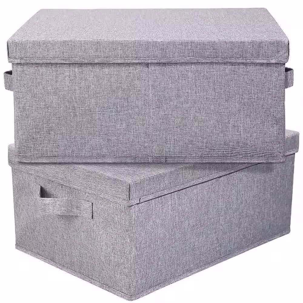 None 25 Qt. Linen Clothes Storage Bin with Lid in Light Grey (2-Pack)