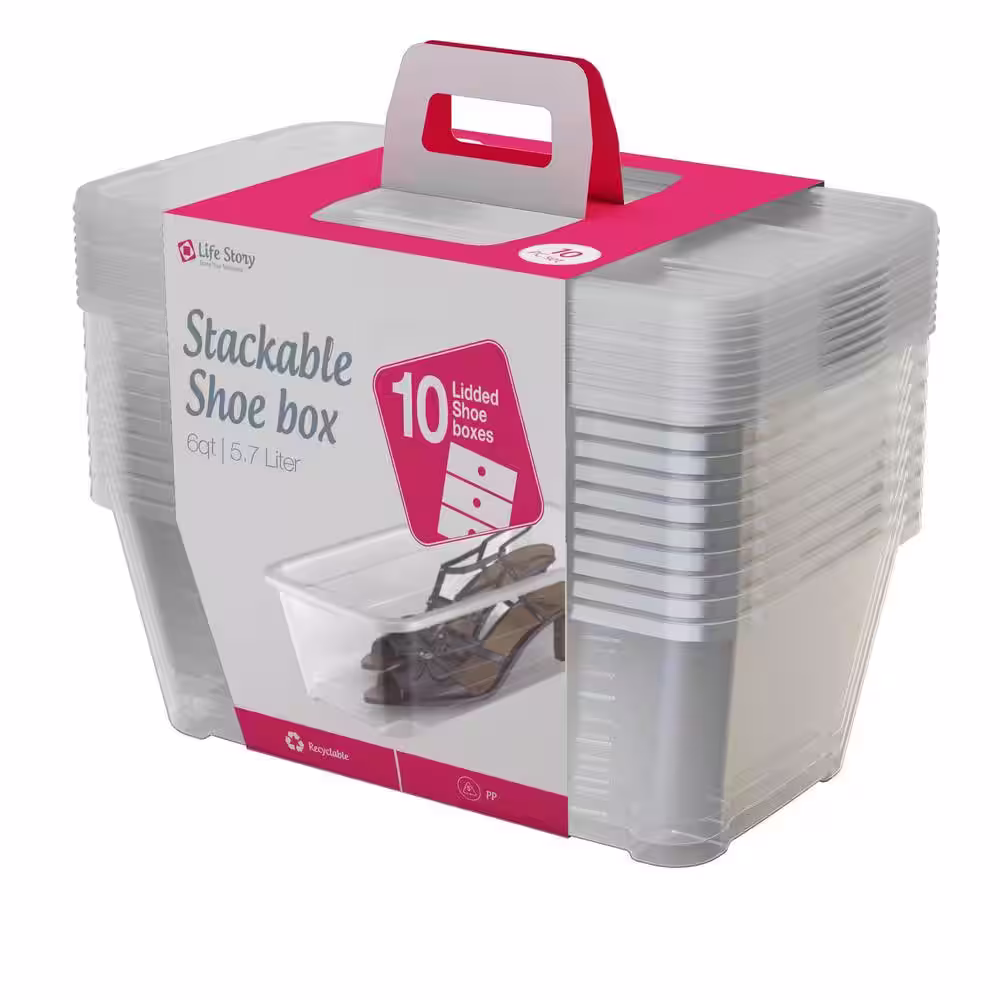 Life Story Clear Stackable Closet and Storage Box 34 Qt. Containers, (6-Pack)
