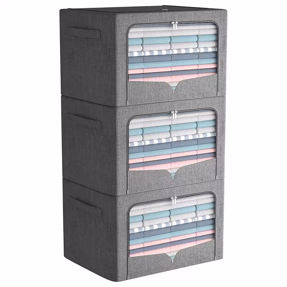 None 70 qt. Linen Clothes Storage Bin with Lid in Dark Gray (3-Box)