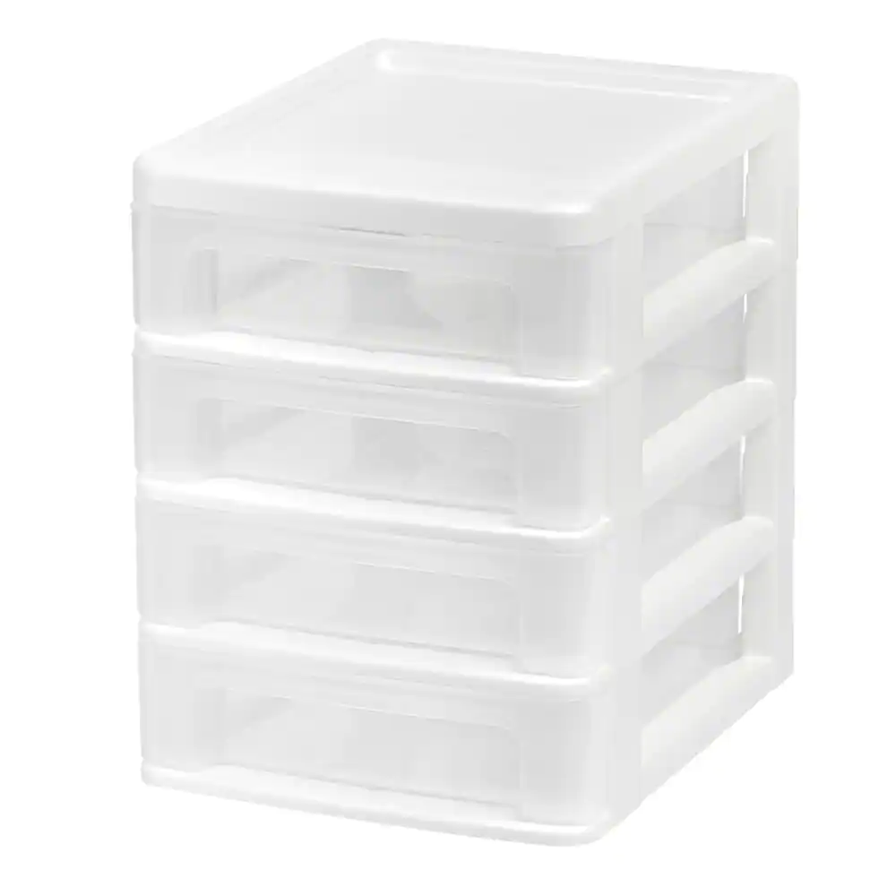 IRIS 7.25 Qt. Compact Desktop 4-Drawer System in White, Storage Tote