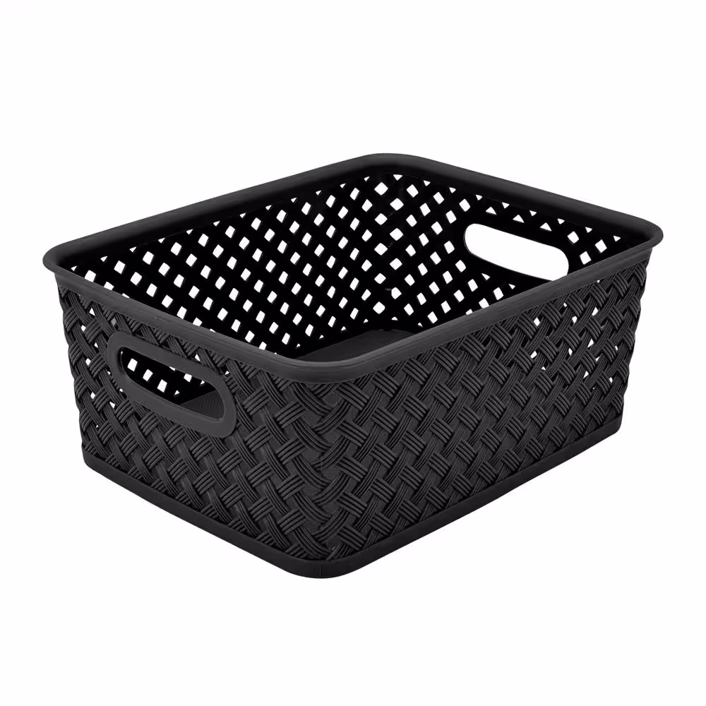 Simplify 2-Qt. Small Resin Wicker Storage Tote Bin in Black
