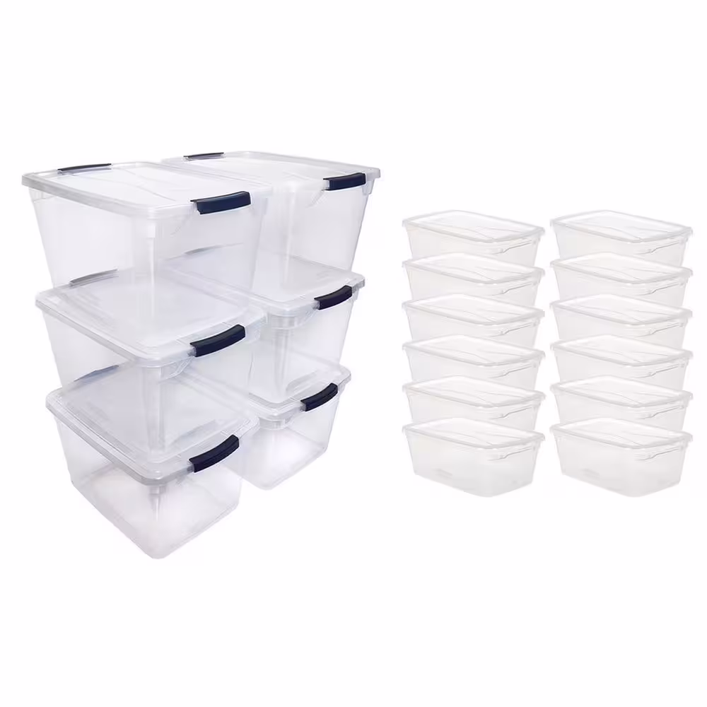 Rubbermaid Cleverstore (6) 30 qt. and (12) 6 qt. Plastic Storage Tote Container