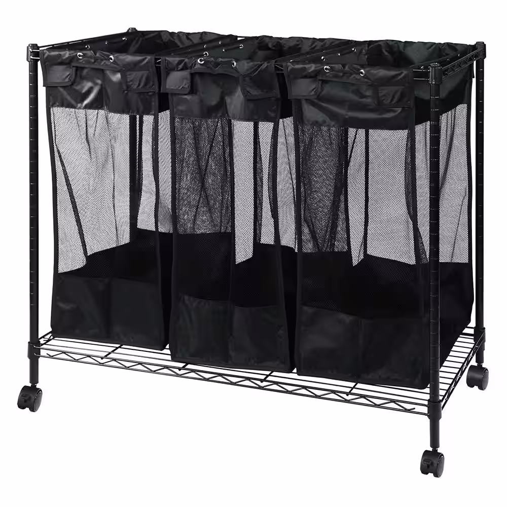 HOUSEHOLD ESSENTIALS Silver Black Metal and Polyester Laundry Hamper Sorter with 3 Vented Bags