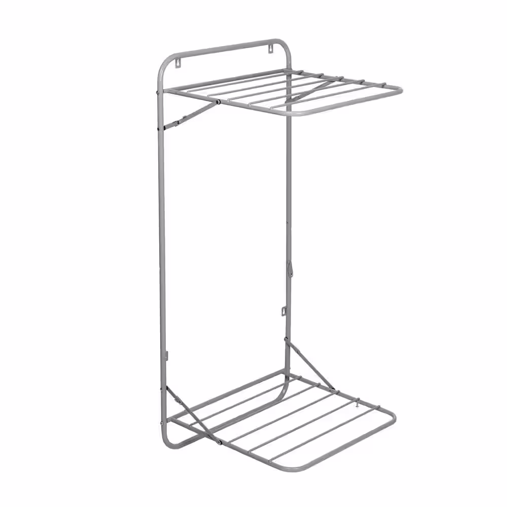 Honey-Can-Do 45 in. H x 21 in. W x 18.5 in. D Wall-Mounted or Over-the-Door 2-Tier Retractable Drying Rack in Gray