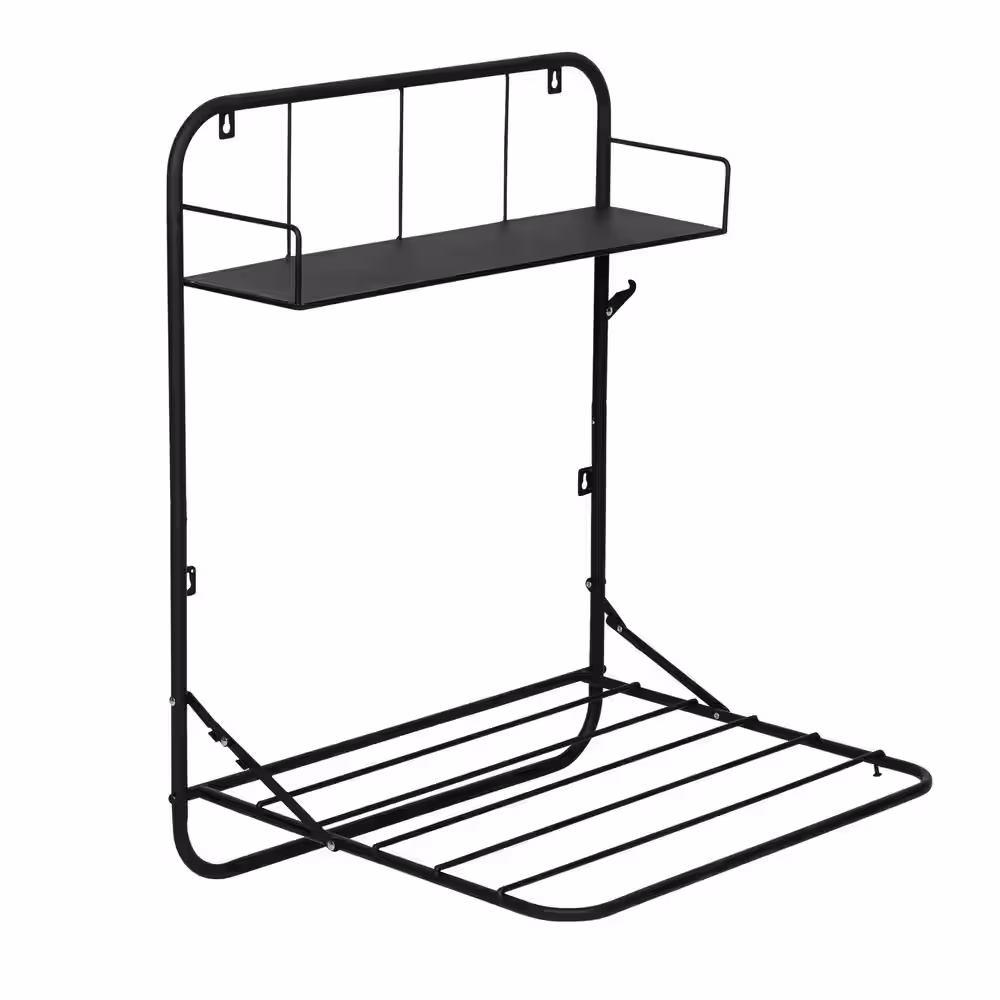 Honey-Can-Do 31 in. H x 24 in. W x 20 in. D 2-Tier Steel Collapsible Wall or Over-the Door Clothes Drying Rack with Shelf in Black