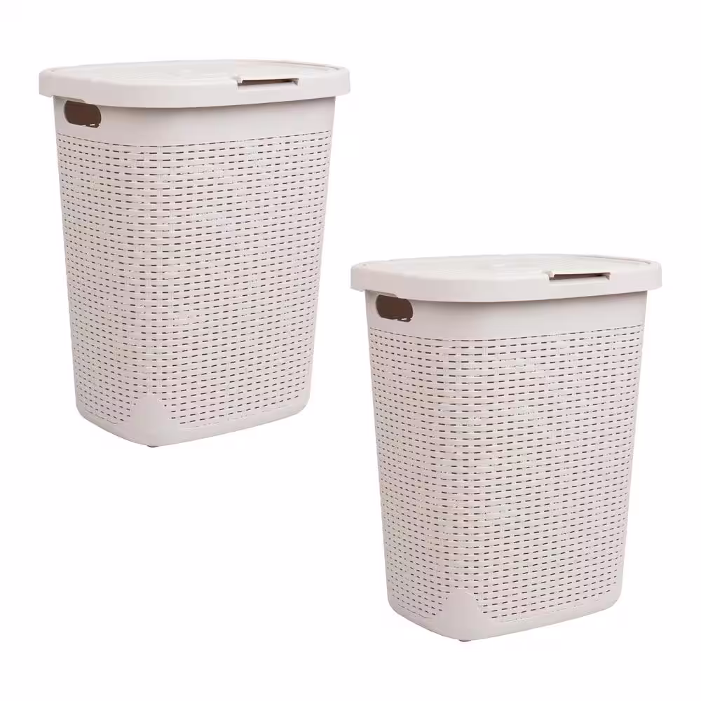 Mind Reader Basket Collection, Slim Laundry Hamper, 50 Liter (15kg/33lbs) Capacity, Attached Hinged Lid, Set of 2, Ivory