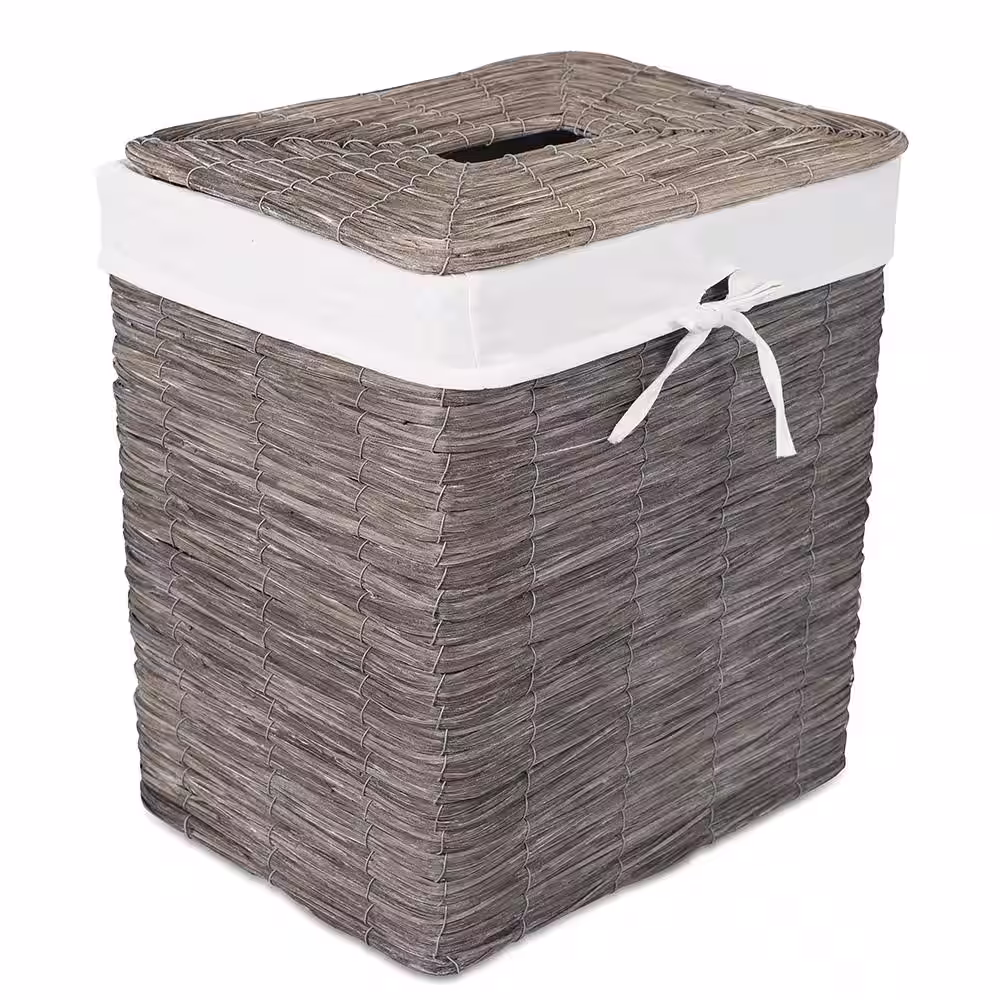 BirdRock Home Grey Rustic Woven Wood Peel Laundry Hamper with Lid