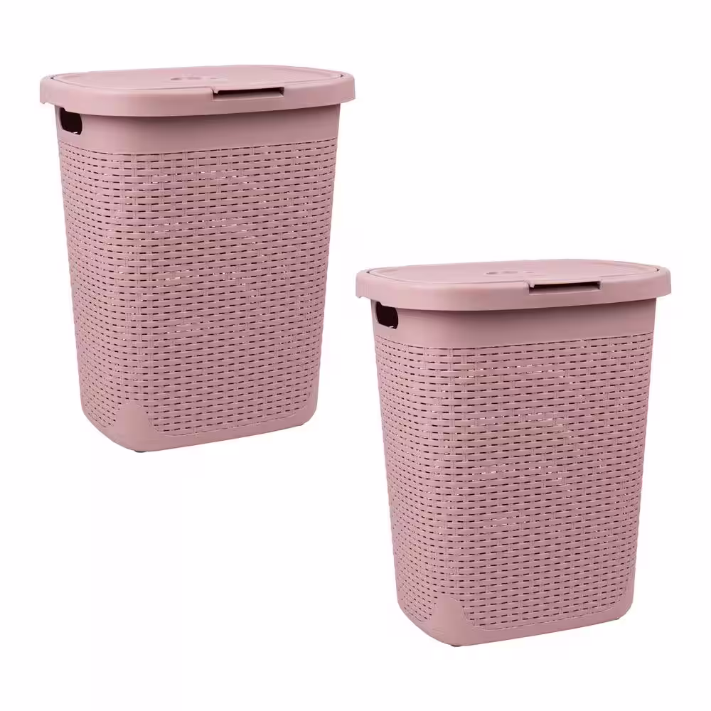 Mind Reader Basket Collection, Slim Laundry Hamper, 50 Liter (15kg/33lbs) Capacity, Attached Hinged Lid, Set of 2, Pink