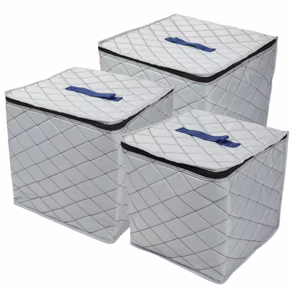 None 24-Gal. Quilted Storage Bins Set in Grey (3-Pack)