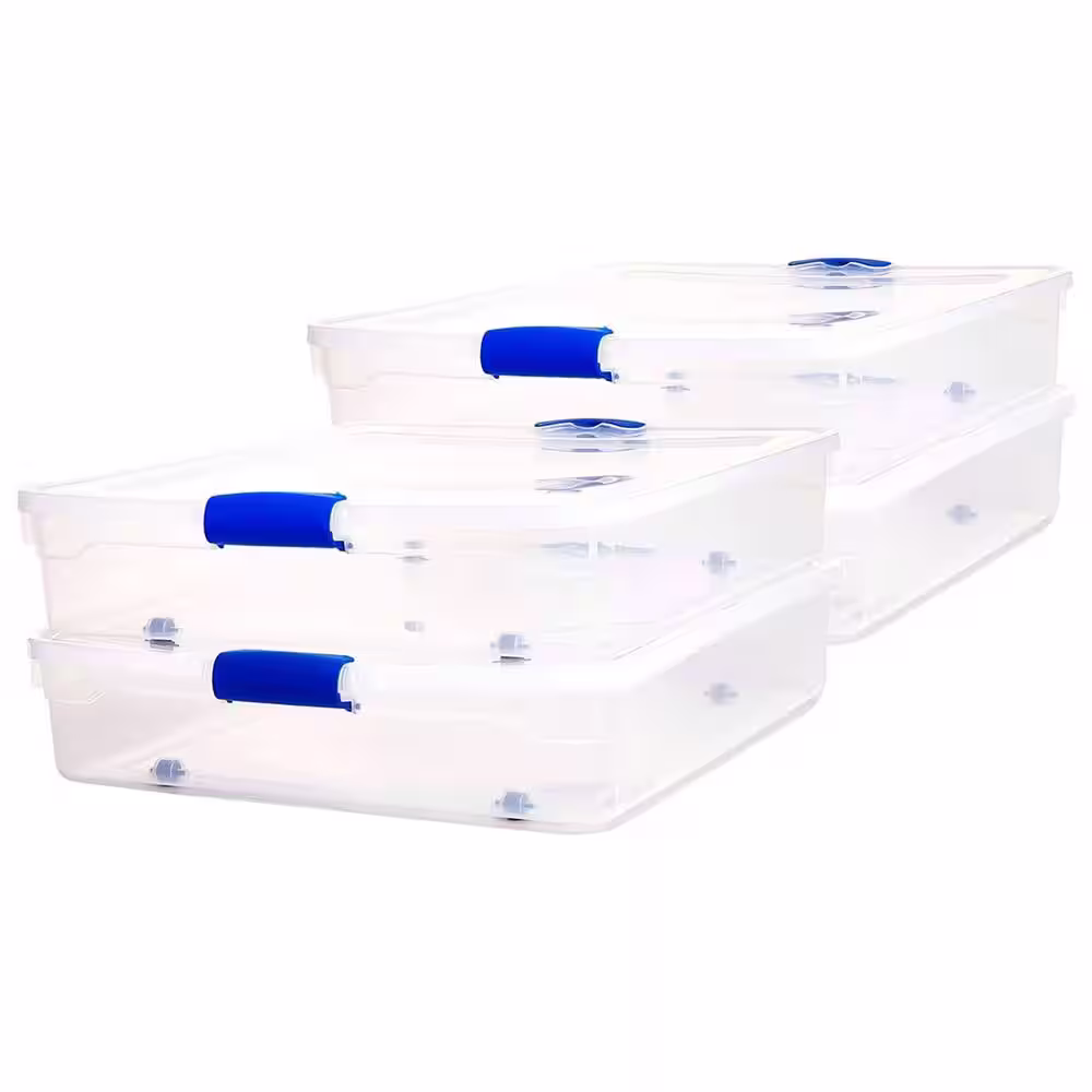 HOMZ 56 qt. Underbed Secure Latching Plastic Storage Container in Clear (4-Pack)