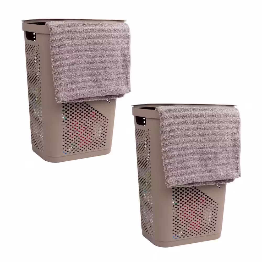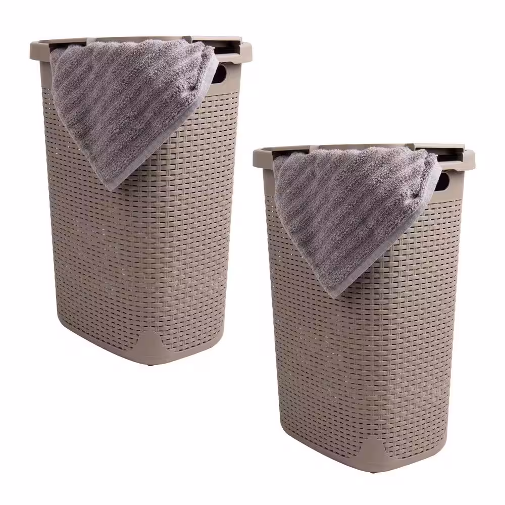 Mind Reader Basket Collection, Plastic Slim Laundry Hamper, 60 Liter (15kg/33lbs) Capacity, Attached Hinged Lid, Set of 2, Tan