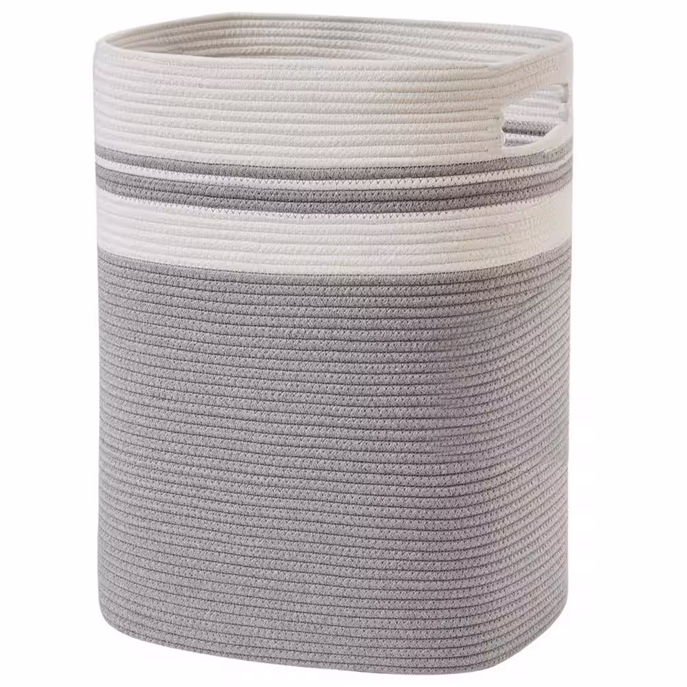 None 16 in. W x 13 in. D x 22 in. H Cotton Laundry Basket Hamper with Handles Gray