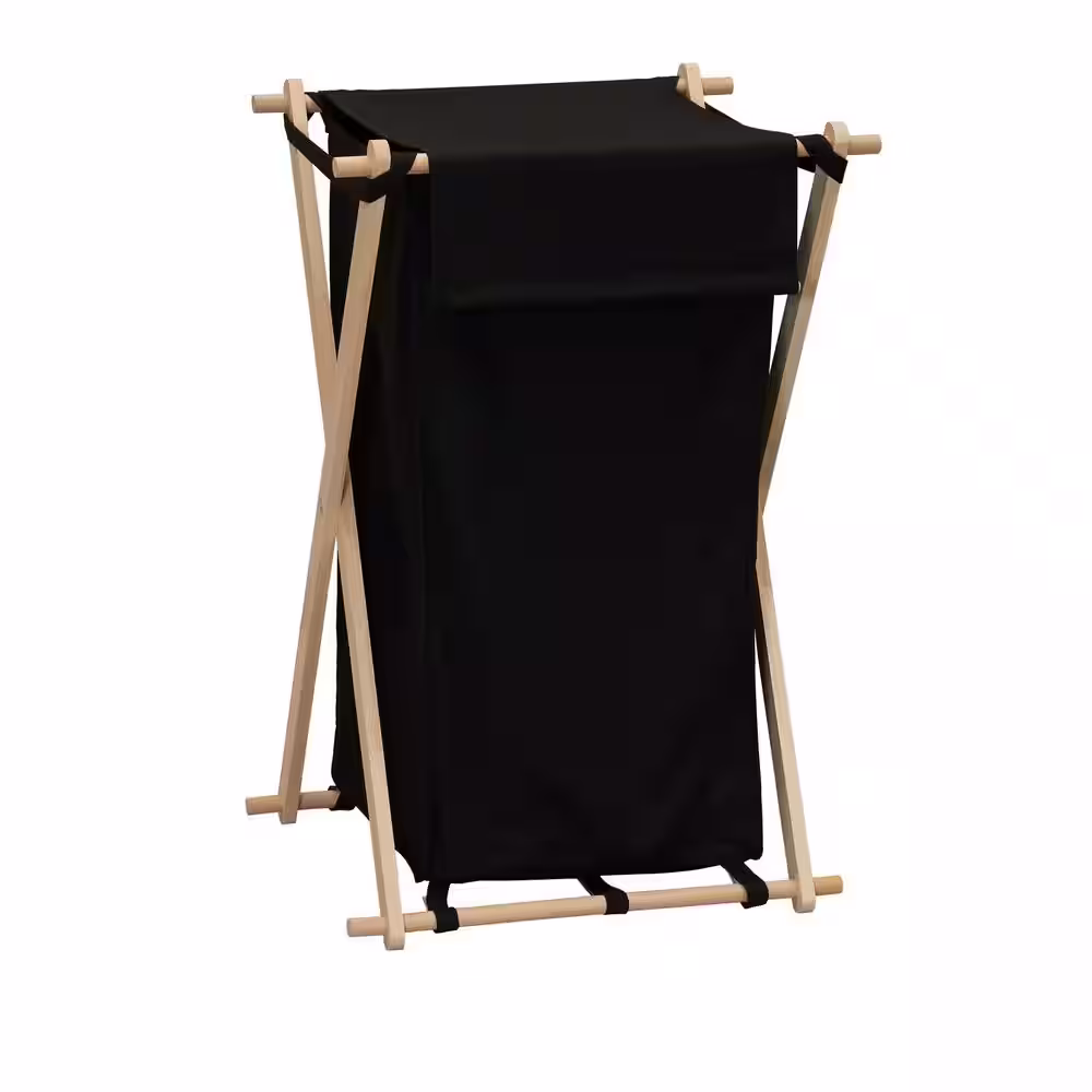 HOUSEHOLD ESSENTIALS X-Frame Wood Laundry Hamper Folding Wood Frame with Washable Poly-Cotton Bag