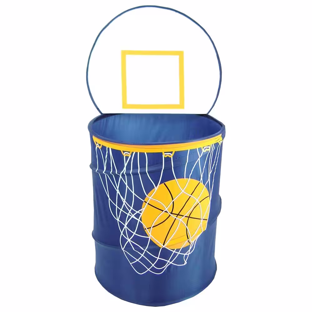 REDMON Since 1883 The Original Pop-Up Bongo Basketball Navy Collapsible Polyester Hamper with Lid and Backboard