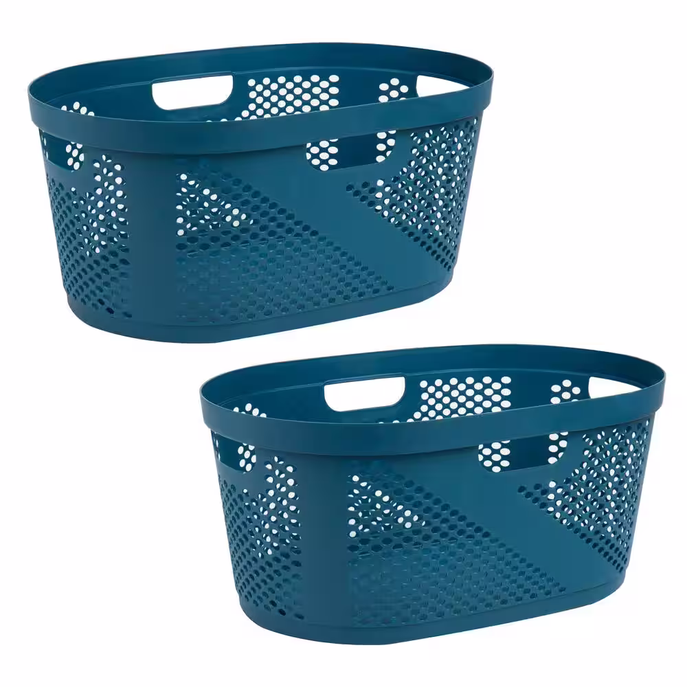 Mind Reader Basket Collection, Laundry Basket, 40 Liter (10kg/22lbs) Capacity, Cut Out Handles, Set of 2, Blue