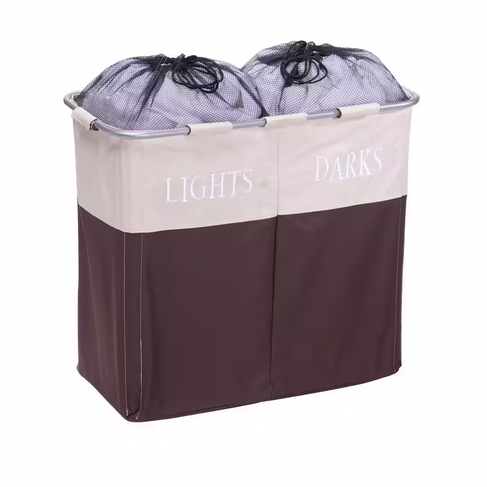 Honey-Can-Do Brown Steel and Polyester Folding Double Frame Hamper