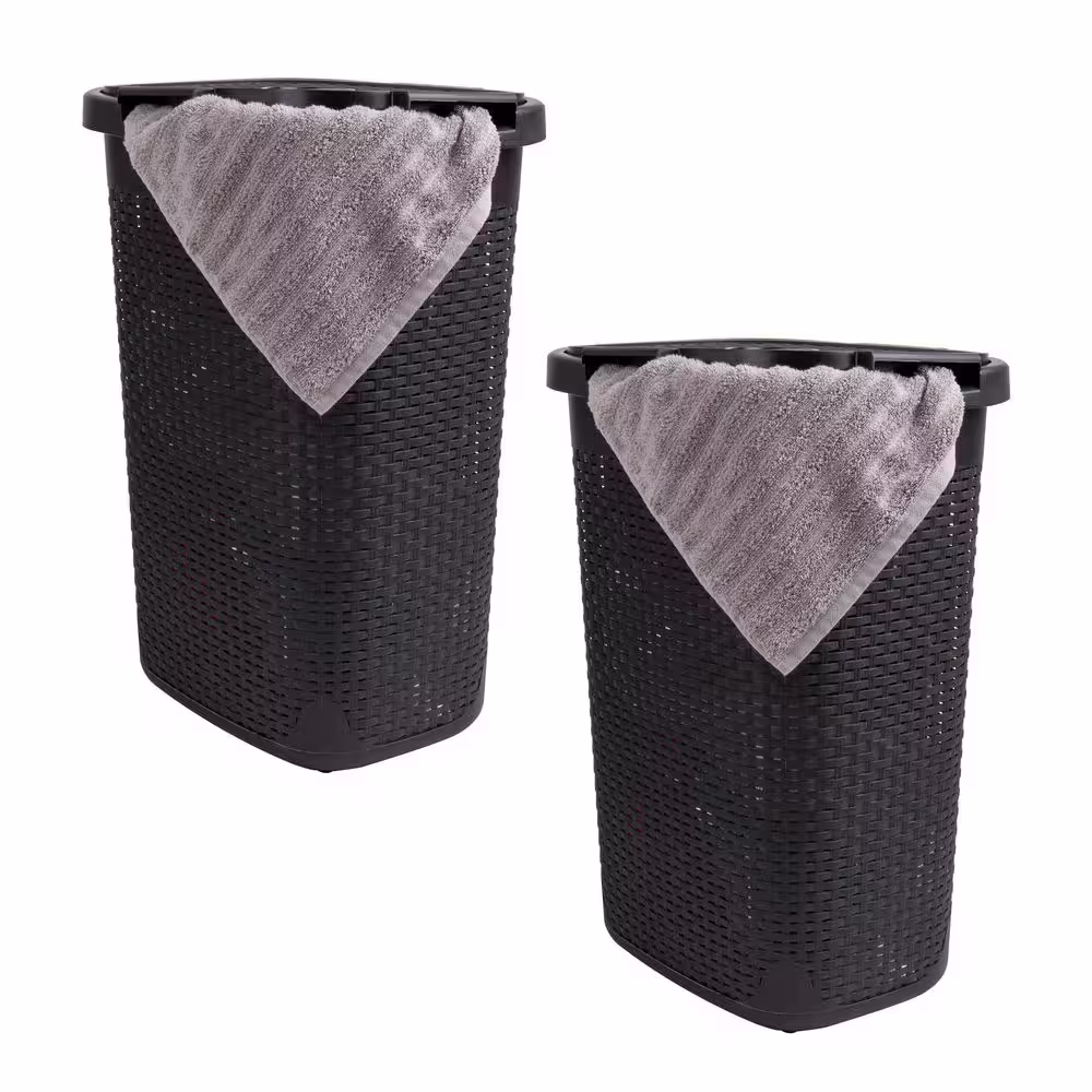 None 50 l Wicker Corner Hamper, Dark Brown