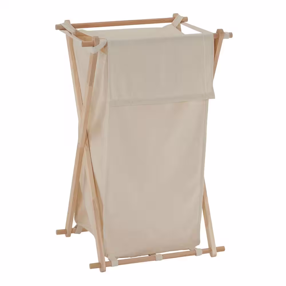 HOUSEHOLD ESSENTIALS Natural Cream, Collapsible, Polycotton, Laundry Hamper, Wood X-Frame