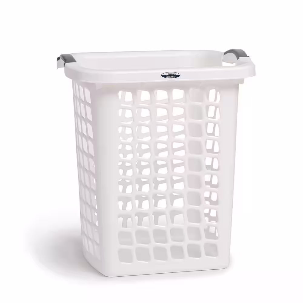 Taurus White Plastic Laundry Hamper with Portable Comfort Grip Handles