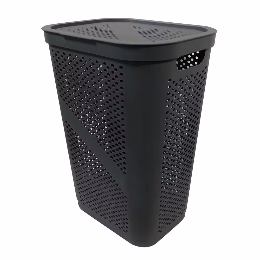 Mind Reader Basket Collection 60 Liter (15kg/33lbs) Capacity Laundry Hamper, Cut Out Handles, Attached Hinged Lid, Black
