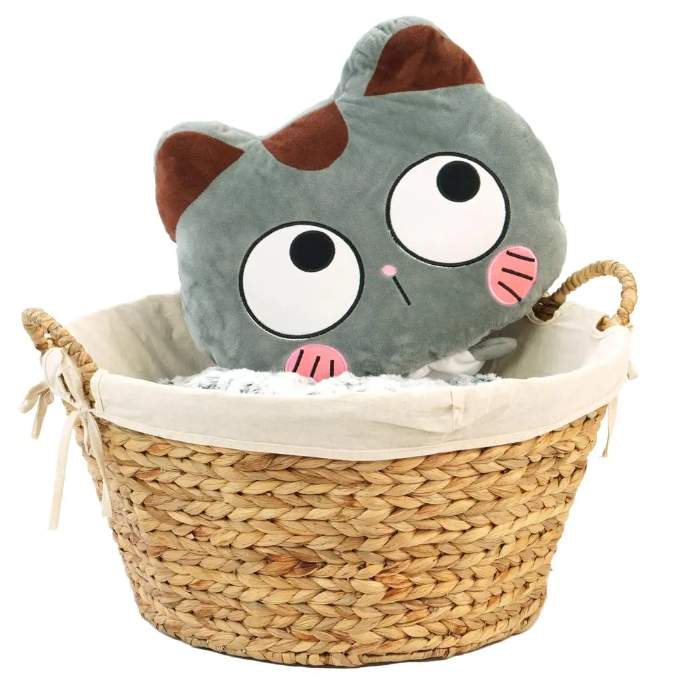 Vintiquewise Water Hyacinth Natural Oval Wicker Laundry Basket with Handles and White Cotton Liner
