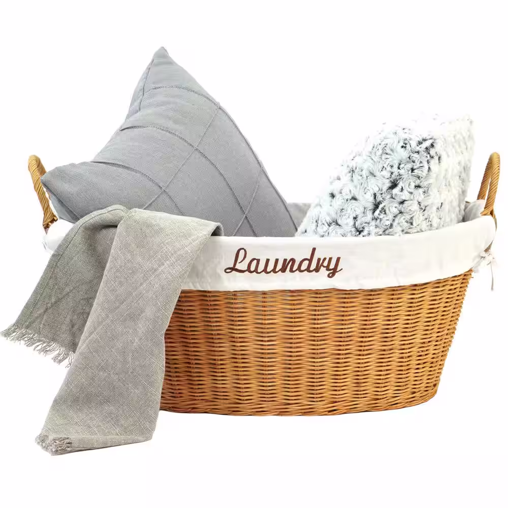 Vintiquewise Rattan Laundry Basket with Handles and White Cotton Removable Lining, Natural