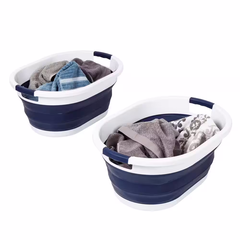 Honey-Can-Do Navy Blue/White Collapsible Rubber Laundry Baskets (Set of 2)