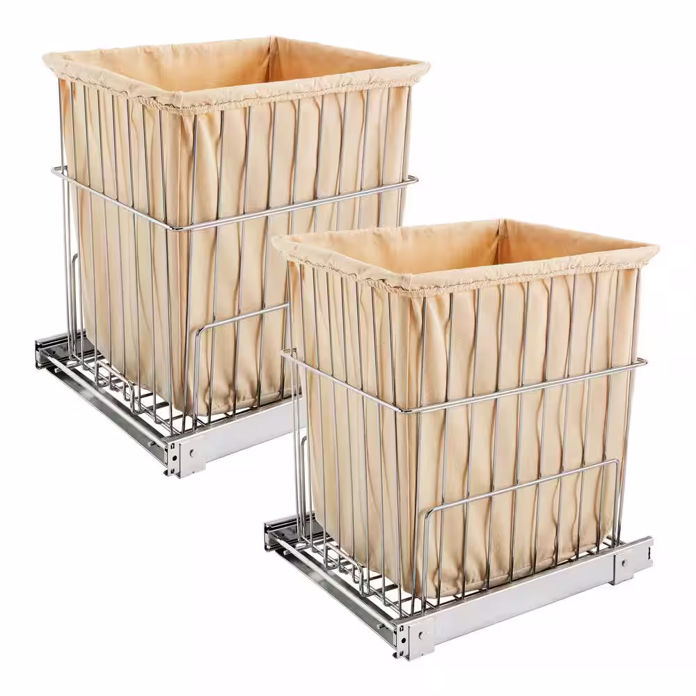 Rev-A-Shelf Chrome Metal Pullout Wire Clothes Hamper with Liner and Mounting Hardware