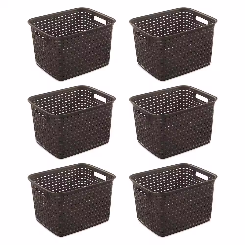 Sterilite 12736 Tall Wicker Weave Plastic Laundry Storage Basket, Brown (6 Pack)