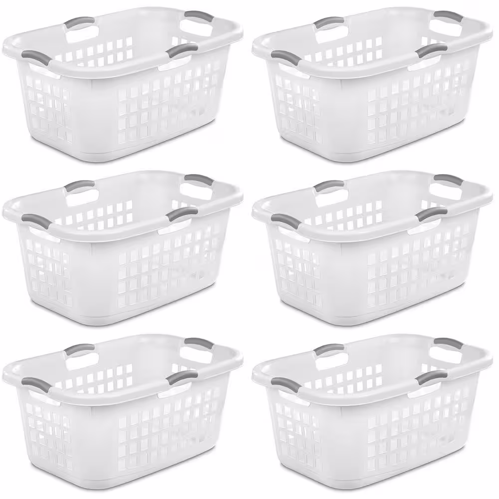 Sterilite Ultra White 2-Bushel Plastic Stacking Clothes Laundry Basket (6-Pack)