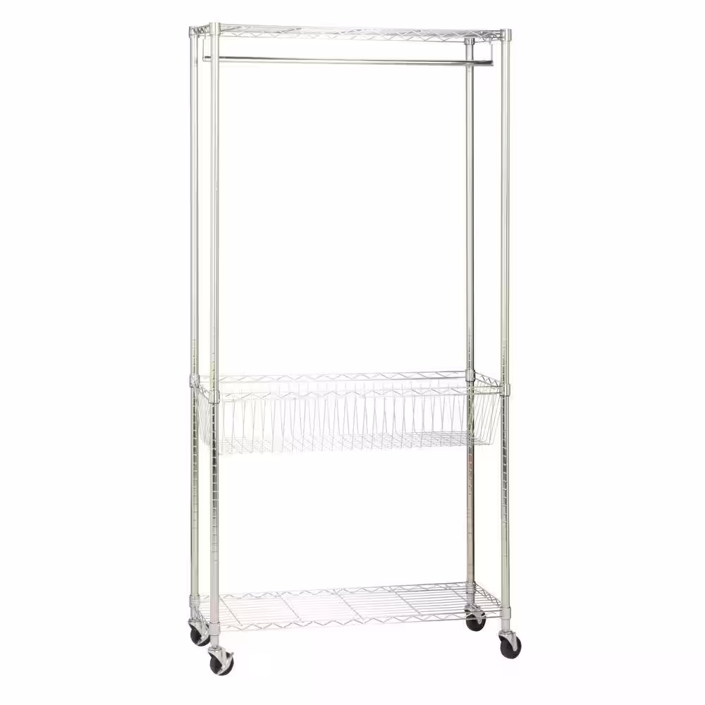 Honey-Can-Do Rolling Laundry Clothes Rack with Shelves, Chrome