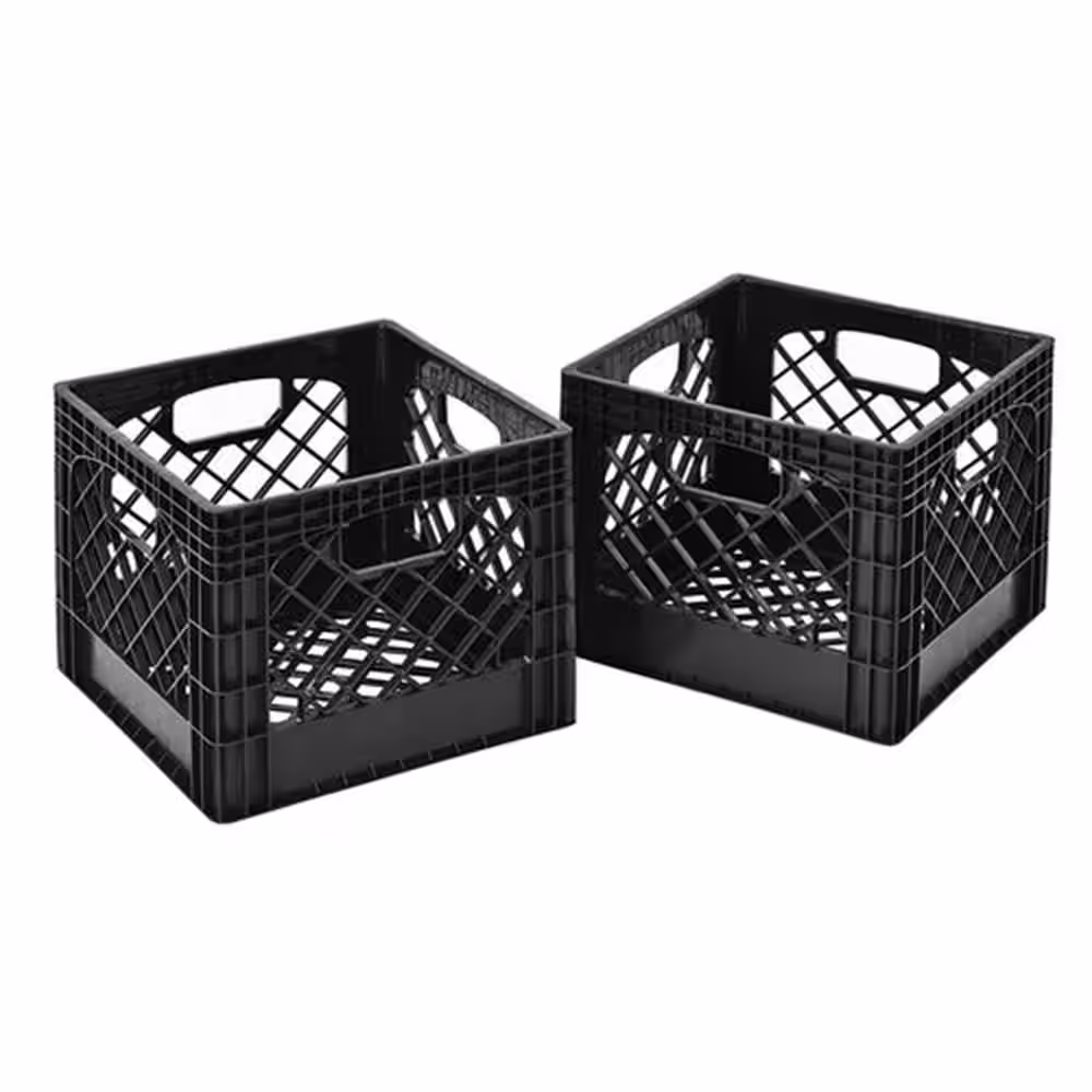 None 18 qt. Storage Stackable Storage Crate with Handles in Black (2-Pack)